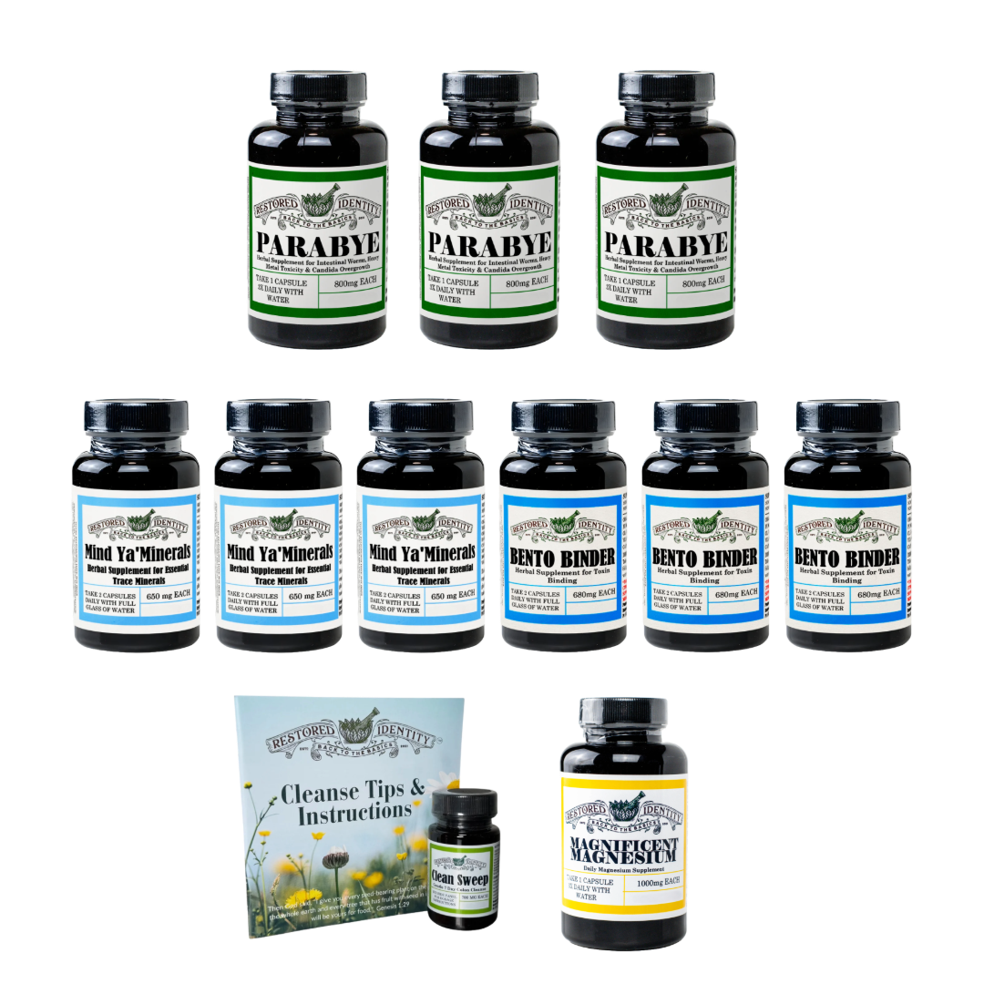 Each Kit comes with step-by-step instructions, a 7-day colon cleanse to complete first to make sure your lines of communication in the body are open, 3 months worth of Parabye and Bento Binder (to kill Parasites, Candida and withdraw heavy metals), 3 months of Mind Your Minerals (to ensure your minerals in the body are balanced while cleansing), One bottle of Revelations Remedy (for deeper cleaning actions) and a bottle of Sweet Dreams (to help you sleep while getting through the rough parts of cleansing).