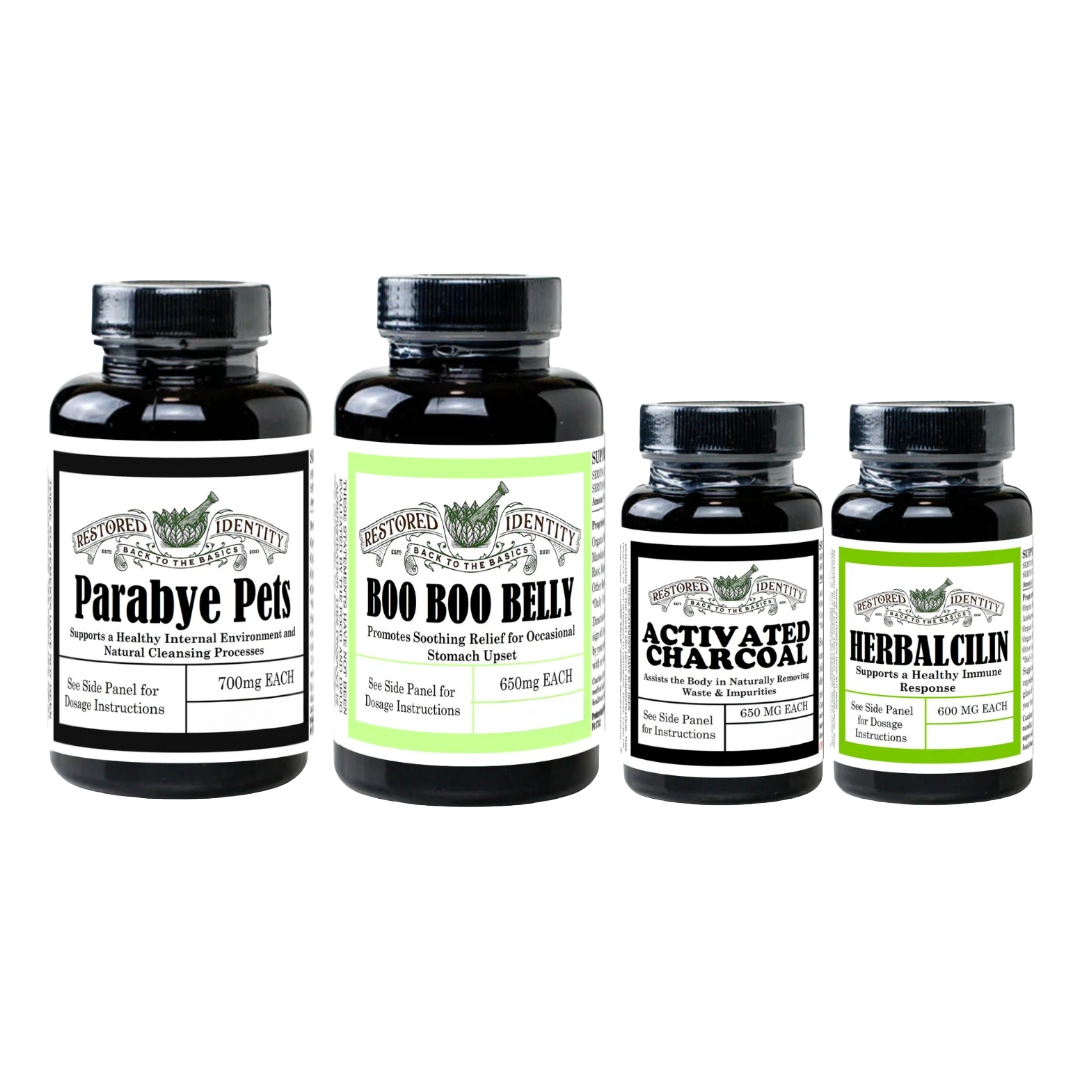 Your furry family members rely on you to protect their health—and now you can support them with the same clean, powerful herbal blends you trust for yourself. The Pet Power Pack brings together four of our most effective pet-safe formulas: Boo Boo Belly, Parabye Pets, Activated Charcoal, and Herbacilin.