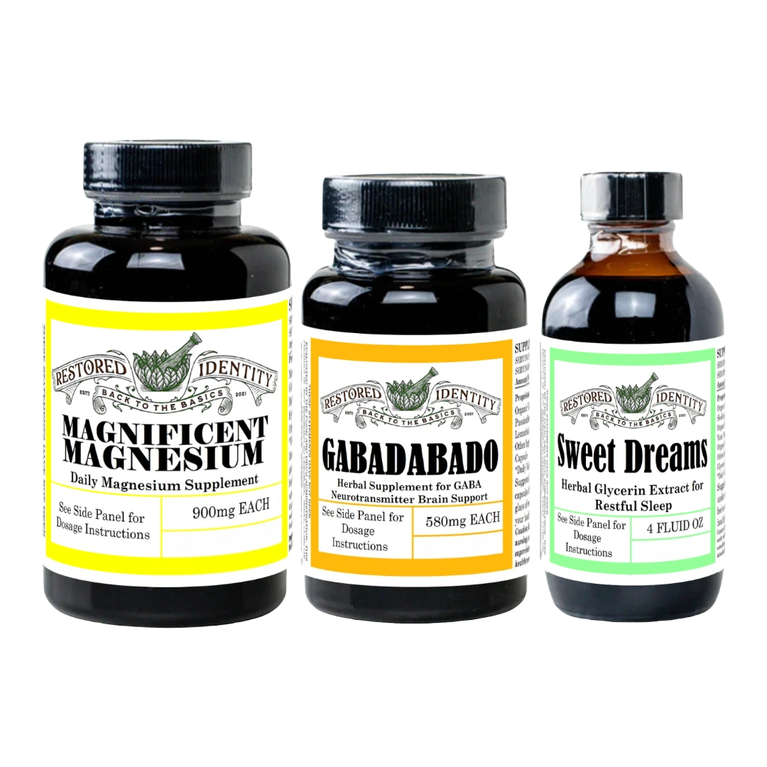 This kit includes three powerful blends that work synergistically to encourage nervous system balance, muscle relaxation, and peaceful rest — helping you unwind naturally and wake restored.*